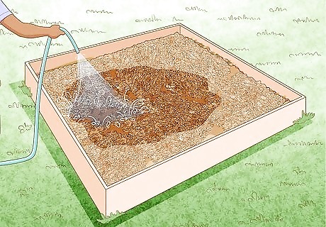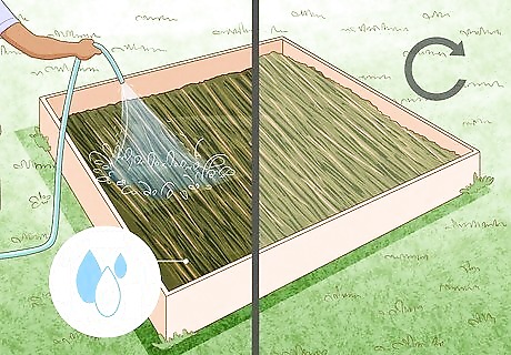 Water the established area thoroughly. Once your no-dig garden is established, it will retain water. However, while it's being established, water runoff and dry soil are a concern. Check the soil daily, and make sure to water to keep the soil damp, if necessary. You can also let the next rainstorm do the job. If you do let a rainstorm water your garden, it won’t be necessary to water it yourself until the soil begins to dry out.