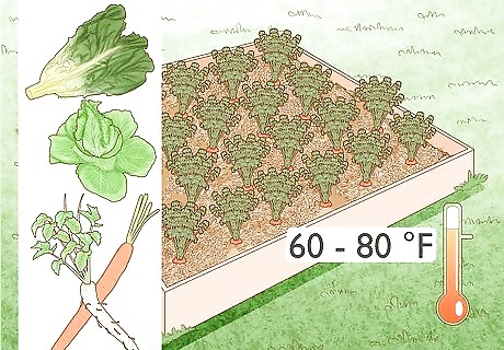 Choose vegetables like carrots during cool to warmer weather. Vegetables such as carrots, cabbage, radish, and lettuce grow well in intermediate temperatures between 60 to 80 °F (16 to 27 °C). If you try to grow these vegetables in colder or much warmer temperatures, there’s a good chance they will not grow well or at all. Parsnip, leek, and celery also grow well in intermediate temperatures.