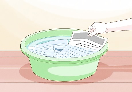 Fill a large container with water and insert the newspaper. The newspapers need to be wet when they are laid out on the mowed or cut ground. Leave the newspaper until it is completely wet and then remove. A wheelbarrow is ideal to use because it can be easily transported, but any large container will work.