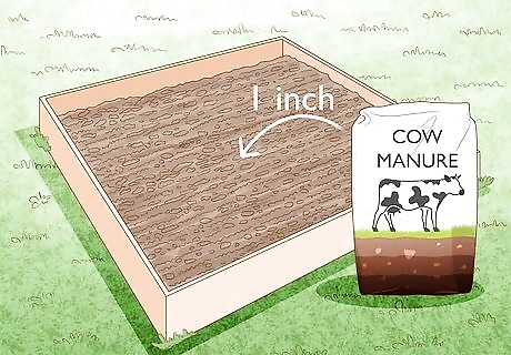 Spread a 1 inch (2.5 cm) layer of fertilizer over the hay. Try natural commercial fertilizer. You can also use well-rotted horse, chicken, or cow manure as fertilizer. You can purchase fertilizer at your local gardening store. If you are using commercial fertilizer, use less than 1 in (2.5 cm).