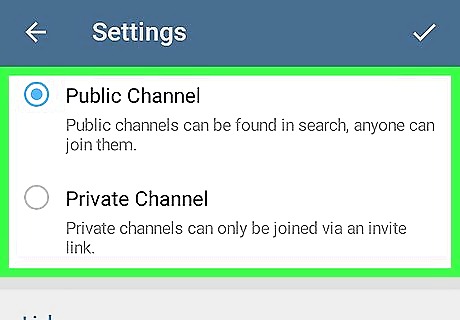 Select a privacy level. If you want people to be able to find your channel when doing a search, select Public Channel. To make your channel available only to those invited, select Private Channel. If you select Private Channel, a URL will appear under “Invite Link.” Tap it once to copy it to the clipboard, then paste it anywhere you wish.