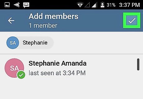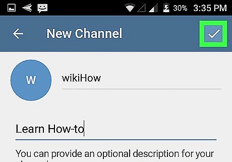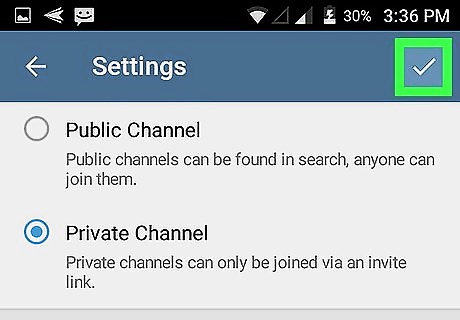 Tap the check mark. It’s at the top-right corner of the screen. Your channel is now active and the selected members have been added. To access it, tap its name on the Telegram home screen.