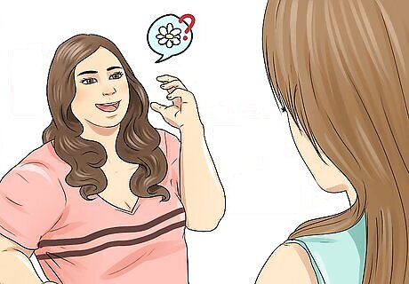 Place your largest flower in front of the greenery. For a loose bouquet, you’ll want to build it from back to front. This prevents any of your flowers from getting lost in the arrangement.