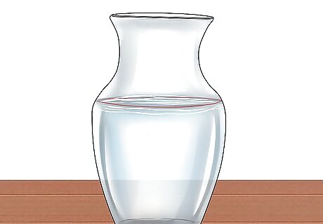 Fill a vase with fresh water. This is good whether you’re making a bouquet for a table or for a wedding. You’ll need to keep wedding flowers in water until they are ready to go. Fill the vase about two thirds of the way full with clear, fresh water.