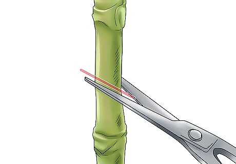 Cut off the bottom of the stem at an angle. How much you need to cut off will depend on how large the flowers are to begin with. It will also depend on how large you want your bouquet to be. When you cut the bottom of the stem, cut it at an angle – this makes it easier for the flower to soak up the water.