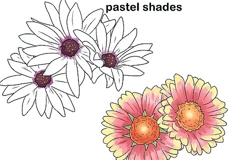 Choose your color scheme. Tropical flowers come in subdued, pastel shades and some brighter, bolder colors. Before you choose your colors, decide which color scheme you prefer – this will help you select your flowers. For example, pale tropical flowers include the African moon (a small, white daisy), the Amazon lily, begonias, cattleya, frangipani, and lotus flowers. Many of these flowers come in colors other than white, but they are more subdued hues. Vividly colored tropical flowers include crab claws, African tulips, angel wing begonias, blanket flowers, bottle brush flowers, and chrysanthemums.