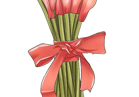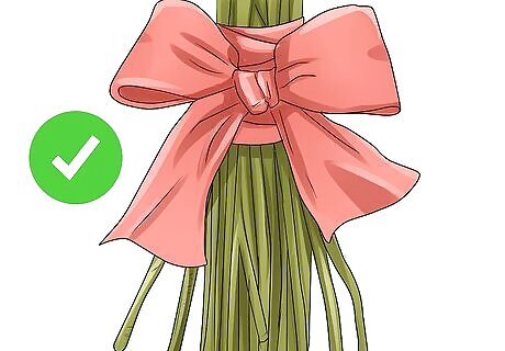 Tie with fabric. To keep the bouquet together, you can loosely tie fabric around your stems. Don’t wrap them with wire, as this will give you a tighter look and will ruin the arrangement. Once your loose bouquet is finished, you can use it however you like - in a vase in your own home, as a hostess gift if you're attending a party at someone else's home, or even for a wedding.
