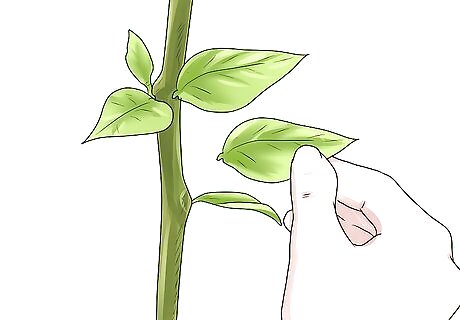 Remove extra leaves. Removing extra leaves increases the longevity of the flowers. How far down the stem you should remove extra leaves varies. You should remove enough so if you’re storing them in water, the leaves won’t be submerged. If you’re not storing them in water, remove enough so that you enough room to hold the bouquet.