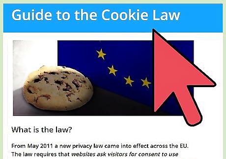 Allow users to “accept” cookies. Make user consent of cookie usage necessary before they browse the site, if you wish or if required by law. Provide a clear explanation of the way you use cookies, as well as a way for the user to consent and opt in to allowing that usage. The ePrivacy Directive, or “cookie law” used by the UK and countries in the EU is a law that requires user consent of cookies. It also requires a clear explanation of how and why your website uses cookies. Note that consent can be implied rather than an explicit “opt-in” on your website, but to make sure you comply, it's advised to require users to take some positive action in order to consent, such as pressing a button, ticking a box, or clicking a link.