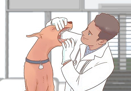 Schedule a vet checkup and ask about a dental cleaning. If your dog has persistent bad breath, or you notice their breath turning especially foul, call your vet for an appointment. They’ll likely check your dog for dental problems or mouth infections, which are both possible causes of bad breath, and may do further testing as needed. If your dog has heavy tartar buildup on their teeth or signs of periodontal disease, your vet may do a dental cleaning. Your dog will need to be sedated for this procedure, and severely decayed teeth may need to be extracted.