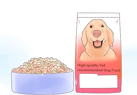 Feed the dog a balanced diet. A high-quality, vet-recommended dog food that is suited to your particular dog is good for their overall health. It’s also less likely to cause tooth decay, diabetes, or other causes of bad breath. Cut back on table scraps and dog treats. Focus on providing them with a nutritious diet. Check the ingredients of your dog's food to make sure it doesn't contain cheap fillers or fish meal. These ingredients can cause your dog to have smelly breath. Ask your vet about giving your dog a snack of cut apples and/or carrots each day. These crunchy treats can help to remove stinky tartar from their teeth.