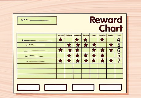 Reward children for their efforts. Creating a reward system will help to reinforce non-bedwetting behavior. Reward your child with praise and privileges when they make efforts to prevent bedwetting, such as going to the bathroom before bed or getting up in the night for a bathroom break. Reward your child for accident-free nights or for nights when they help to clean up if they do have an accident. Keep it simple and highlight one behavior you want to reward at a time. Choose a limited amount of rewards for your child to pick from. Ensure rewards are meaningful for your child and realistic for you to give. Use a sticker chart to stay on track. Give your child a sticker immediately to reinforce the good behavior. Keep track of your child's progress by placing the stickers on a chart or calendar. Once your child has earned an agreed upon number of stickers, he can trade them for rewards. Avoid punishment or negative reinforcement of your child, such as yelling at him or taking away his toys after bedwetting. While you should reward children for their efforts in staying dry, remember that bedwetting is an involuntary process and child has no control of it. Therefore, child should not be reprimanded or made to feel guilty about bedwetting.
