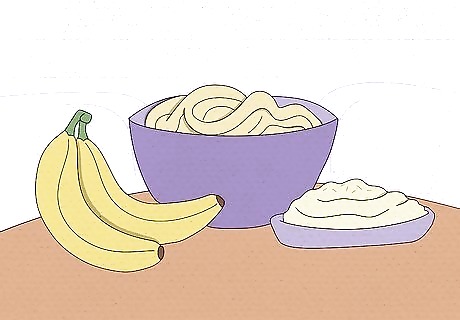 Go for soft food. At first, you should only eat softer foods when you have braces. Harder foods can be hard to chew and cause pain. Stick to things like mashed potatoes, soft fruits, soups, noodle dishes, and other foods that are easy to chew. This can be frustrating, but remember it's only temporary. The longer you have braces, the more comfortable you will be eating with them. Eventually, you'll be able to enjoy a wide variety of foods even though you have braces.