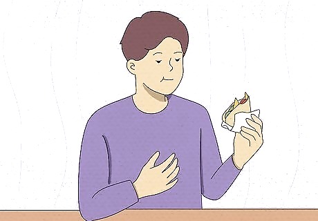 Chew slowly. When you're first adjusting to braces, eating can be difficult. You may find yourself struggling to chew and food may be harder to swallow. Chewing slowly can help you get a feel for how to eat with your braces. It can also cut down on cuts and other injuries. Try to make a habit of chewing a set number of times, like 10 times, for each bite. You can also try to time how long it takes you to eat a meal. Strive to make every meal last 20 minutes, for example.