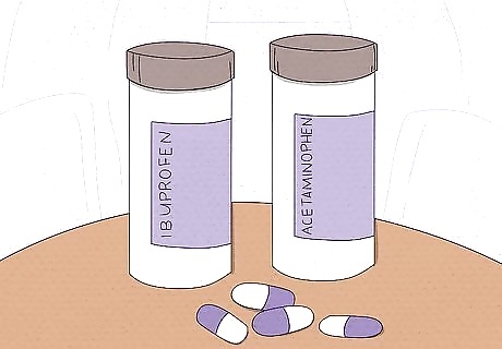 Try over-the-counter painkillers. Painkillers such as ibuprofen and acetaminophen can be used to help numb pain caused by braces. If your mouth is chronically sore, taking over-the-counter painkillers on occasion can dull the pain. Make sure to only take the dosage recommended on the bottle. If you're on any existing medication, talk to a pharmacist to make sure it does not interact poorly with over-the-counter medication.