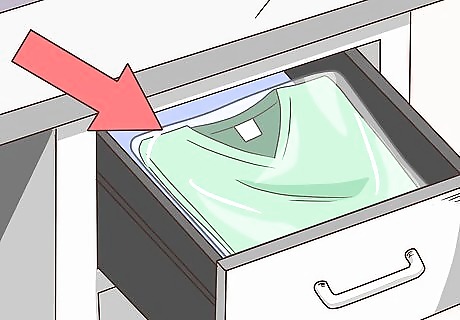 Store extra clothing at work for a quick wardrobe change. Sometimes you are not able to shed enough clothing at work to feel comfortable and you may end up sweating in your clothing. If you are worried about appearing unprofessional at work after a hot flash, you may keep a piece of clothing in a desk drawer that you can change into in the bathroom. This way, you can still look put together at your meeting later in the day, with no sweat lines to be seen. For example, you may store a more professional outfit at your desk, such as a clean cotton collared top and dress pants, as well as a more casual outfit, such as a cotton sweater and loose pants. Then, you can change into either outfit depending on what you are doing that day at work.