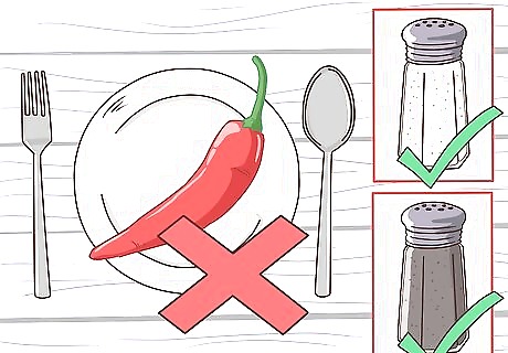 Skip the spicy, hot food. Spicy foods can cause your body temperature to rise and make your hot flashes worse. Avoid foods that have seasonings like hot pepper, cayenne, or chili powder. Stick to foods that have more neutral seasonings like salt and pepper as well as citric seasonings like lemon or lime. You should also avoid food that is hot in temperature, as it can make you feel even hotter during a hot flash. Have meals at room temperature or food that is chilled and avoid piping hot foods like hot soup or hot stew.