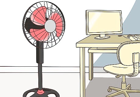 Set up a fan in your work area. Nothing is worse than a hot, stuffy room when you have hot flashes. To keep your work area cool, set up a fan on your desk that will circulate cool air around your workstation. You may also place a standing fan in your work area to better circulate air. Another option is to move to a desk by the window so you can open it up and let in fresh air when you have a hot flash at work. Make sure the window has a shade so the sunlight doesn’t heat up your work area.