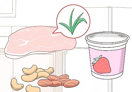 Add more healthy protein sources to your diet. Healthy protein can also help to increase your hormone production, which can help prevent hot flashes. Try having healthy protein options like yogurt, grass-fed meats, eggs, and soymilk as part of your diet. Nut butters like cashew and almond butter are also good protein sources. You can add these protein sources in the form of a soymilk smoothie for breakfast or a snack of fruit and almond butter at work.