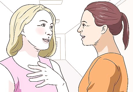 Try not to be embarrassed about hot flashes at work. Though you may find hot flashes uncomfortable, try not to be too embarrassed by them in a work setting. You may try simply telling a coworker, "I'm having hot flashes, happens sometimes." Or you may work through the hot flashes and say nothing to your coworkers. Having hot flashes is a completely natural process and you should not feel embarrassed or ashamed for having them. Keep in mind there is likely someone else in your office who is experiencing hot flashes and you are likely not alone in feeling your symptoms. You may chat with that person and trade experiences so you do not feel so alone with your condition at work.