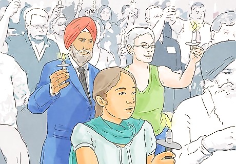Say “yes” to invitations. If a neighbor invites you to a party, try to find the time to go. If you receive a mailed invitation to visit an open house for a new business, stop by and give it a glance. This can even be said of things you might not normally attend, like a holiday pageant at a local church, or a play at the community center. Each of these has the potential to connect you with people who can eventually become friends. Try to step out of your comfort zone and start a conversation with the people around you. At a play, you might talk to the people in the seats on either side of you, or at a business opening, you might take a few minutes to talk to the new business owner. Take the opportunity to say a quick hello whenever possible.