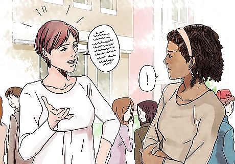 Be the voice of reason and ask the person to stop. Most people will be reasonable if given the chance. Being open to a reasonable compromise aids the resolution process. Appeal to a person’s sense of fair play. Regardless of whether you or someone you know is the target of a rumor, approach the instigator and say something like, “Hey _____, you know it’s not fair what you’re saying about _____. Come on. Think about it. You should stop.” The person’s response will vary. For example, if the person is reasonable they will accept what you are saying and change their behavior. On the other hand, the person can look at you in a crazed way and say, “Oh, you want to make me stop? Huh? What are you going to do about it?” If the person stops, then you can thank them for being a good person. If the person has an inflamed reaction, then try to diffuse their negativity. You can say something like, “Hey, I was just trying be peaceful about this.” You need to remove yourself from the situation as soon as possible if someone threatens you. Report the incident to someone in authority like a teacher, counselor, parent or law enforcement in extreme situations.