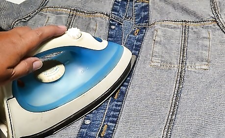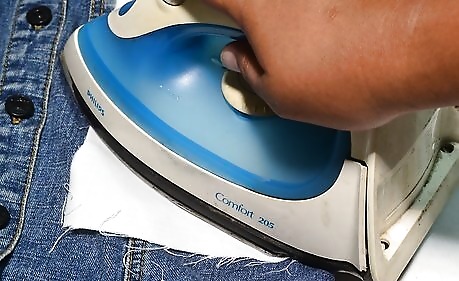 Remove the iron and cloth and turn the jacket inside out. The patch should now be stuck to the front of the jacket, but you’ll need to secure it in place by ironing from the inside as well.