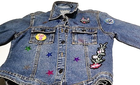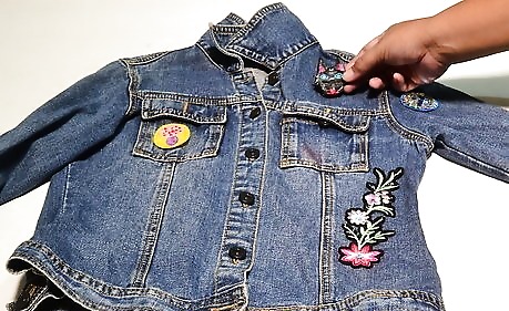 Position some of the patches on the front of the jacket. Move them around a bit and play with your design until you find something you like.