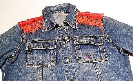 Sew tassels onto the jacket. Find a strip of tassels at your local craft store or online and pick a seam on the jacket to sew them into. For example, you could have tassels dangling from the seam that runs along the shoulder blade area on the jacket, or you could sew tassels into the seams running along each sleeve.