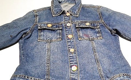 Replace the jacket buttons with something more flashy. Use a thread cutter to remove the old buttons. Replace them with colorful buttons or buttons covered in rhinestones. You could even sew old earrings or pins onto the jacket to use as buttons.