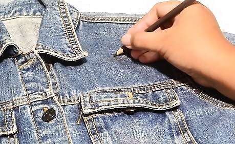 Mark your design on the jacket using a pencil. If you want to do a square patch of studs somewhere on the jacket, draw the square out with pencil first. You can make all kinds of patterns using studs. Try doing triangles on each flap of the collar, or covering both shoulder areas of the jacket with studs. You can also do studs along all of the seams on the jacket.