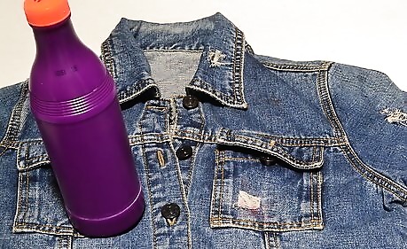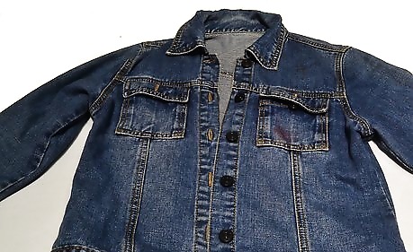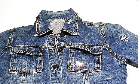 Lay the denim jacket front side up on a flat surface. Place a piece of cardboard underneath the jacket so the surface doesn’t get scratched during the distressing process.