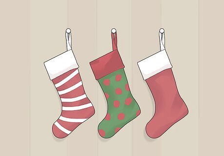 Hang your stockings in a prominent location. Stockings make a great homey decoration, and you don't need a mantelpiece to hang them! Opt for fun, personalized stockings or sophisticated designs based on your preference. Simply hang them on an open wall, centering them in the space. Above the mantel is a great option, too, if you do have a fireplace. Just make sure they are well away from the fire.
