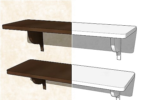 Leave some empty space so the shelf doesn’t look cluttered. Unless you’re going for a very modern look, your shelf shouldn’t be sparse, but there should be some empty space between some of the objects. As you’re arranging your decor, step back every so often and take a look at how everything is grouped together. If anything looks too crowded, try moving the items further apart, or remove something from the shelf. There’s no definite rule for how much empty space there should be. Just trust your own taste on this. If you’re still not sure, ask a friend or a family member for their opinion. Start with an assortment of objects and remove them as you go while you’re styling. Try different arrangements until you get the look you want.