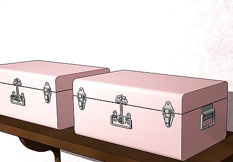 Use boxes and trays to hide clutter. You may need to use your shelf to store items like loose papers, phone chargers, or other small objects that are functional but unattractive. If that’s the case, keep the items close at hand but out of sight by hiding them in pretty boxes or magazine holders. This will help keep your clutter contained, but you’ll still be able to easily reach your objects when you need them. You can also group small objects like paperclips or coins together in small bowls or on trays. Look for boxes that are decorative and nice to make your display look more purposeful.