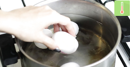Boil the eggs. Hard boil the eggs for fifteen minutes. Allow the eggs to cool completely. Set them in the fridge if you'd like to speed up the process.