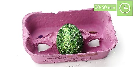 Allow time to dry. Once the egg is coated in glitter, give it thirty to sixty minutes to dry. You can leave the egg in the cup as it dries, or place it in an egg carton.
