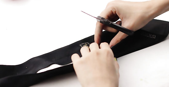Cut up the seam. This should double the size of your tie, which will give you a piece large enough to work with. Cut out a section that can easily wrap around your egg. You'll need a section of the material that wraps around the egg and can be held together. Leave about five centimeters of excess fabric.