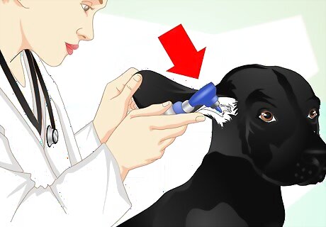 Have a veterinarian inspect your dog's eardrums. The only way to be totally sure that your dog's eardrums are fine is by having them examined by a veterinarian or veterinary technician. The vet, or vet tech, will use an otoscope, which is a lighted instrument, to peer into the ear canal to visually see the eardrum. It is important that the eardrum does not have any damage and is not torn. If you apply medicine to an ear with a damaged eardrum it could damage the ear further, including the risk of full hearing loss.