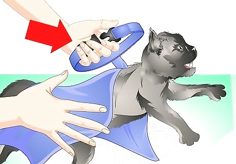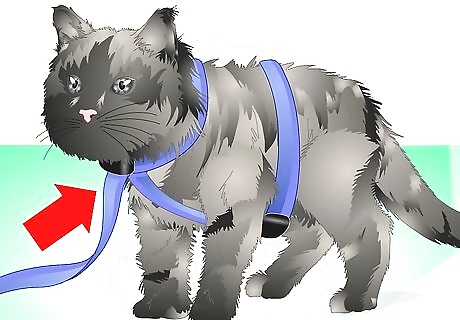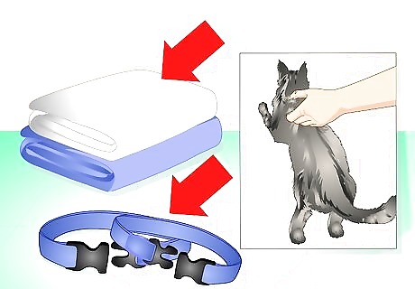 Use a harness. A harness can be used to keep a firm grip on the cat. These are more preferable than a collar, which can hurt the neck or strangle a cat. A properly fitted harness will give you a good handle on the cat when light restraint is needed.