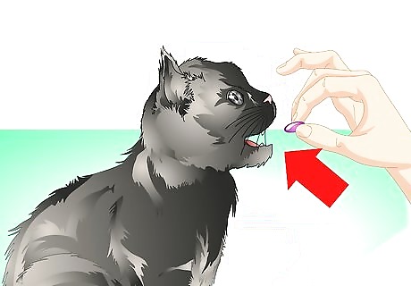 Release the cat gradually from restraint. Keep the cat restrained for a minute to make sure all medication is swallowed and the cat is calm. Also make sure to protect yourself from the scratching that might occur as you let the cat go free. Give your cat a lot of praise and some tasty treats as a reward for good behavior.