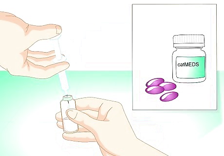Prepare medications. It's important to be all set up before attempting to restrain your cat. If you need to put medication in a syringe or count out pills, do that before grabbing the cat. Have the medication near by, so that you can easily grab it while you have the cat restrained.