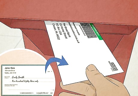 Find the mailing address. Call up the bank and ask. Find the toll-free number on your bank card and speak with a representative to figure out where to send the check. Bank of America, for instance, has different addresses depending on whether you are sending the check by regular mail or sending it overnight or by FedEx.