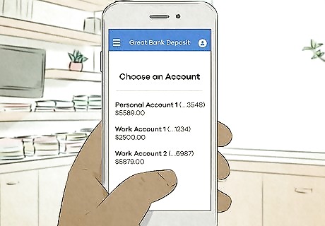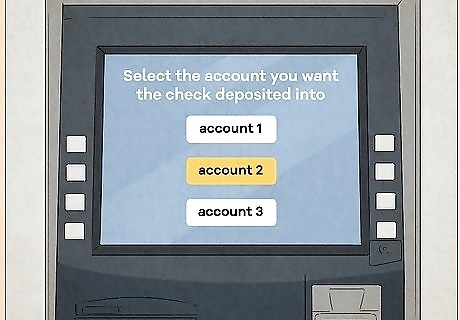 Choose which account to deposit into. Select "deposit" and then the account you want the check deposited into. Next, you'll have the choice between cash and check. Select “check.”