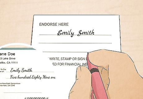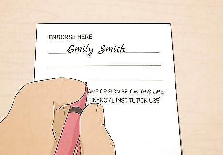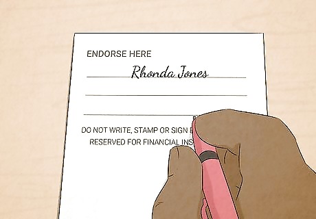 Endorse your check. You can endorse a check by signing on one of the gray lines on the back. The back of most checks say “Don’t write below this line” because the bank documents the transaction beneath this line. If two names are on the face of the check, then one or both of you might need to sign. When the names are joined by an “and,” then both will sign. If the names are joined by an “or,” only one person needs to sign. Sometimes, the bank teller might just take one person's name and deposit the check into their account and then wait for the other person who wrote the check to dispute any fraud charges (should it not be the right person).