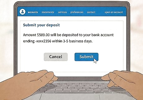 Submit your deposit. The bank should review your submission and either deposit the money instantly or on the next business day. Check with your bank to find out how long it takes. Depending on your bank, you may get a confirmation email. If not, you can simply log into your account and see if the money has been deposited.