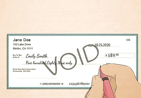 Void the check. Once your check is deposited, write “processed” or “void” on the check. You should keep the voided check for two months, though your bank might set a different length of time.