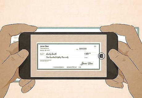 Download a mobile deposit app. Check to see if your bank features a mobile deposit app for your tablet or smart phone. Chase, Bank of America, Citibank, and other banks have developed apps for mobile devices that make depositing a check as simple as taking a picture. If an app is available, download it onto your phone or mobile device.