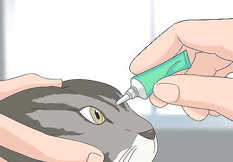 Apply eye medication. Because Horner's can prevent your cat from blinking normally, your vet may prescribe eye lubricant to make their eyes more comfortable. You should give this medication to your cat as instructed by your vet. Phenylephrine eyedrops are sometimes prescribed to help alleviate symptoms while your cat undergoes treatment for the main cause of the condition.