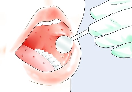 Look for Koplik's spots inside the mouth. A few days after the initial cold-like symptoms begin, small red spots called Koplik's spots will usually develop on the insides of the cheeks. These spots will have a small white or bluish-white center, making them look like grains of sand, and will often be closely clustered around the areas where the molars touch the cheeks. These spots will persist on their own for a few days before the full-body rash develops. If you notice these spots on yourself or someone else, it is important to take action fast, since these spots indicate that the disease is, in fact, measles, but that it has not yet reached its most contagious stage.